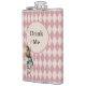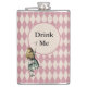 Lägg till lite Alice i Wonderland stollig med den här designen. Den har Alice som närmar sig orden "Drink Me" i mitten med ett stort schackbräde runt mönster. Den här designen lägger till lite storybook och humor, med den vackra färgen tealisk mynta och rosaftig mauve.
