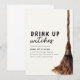 Gör er redo att höja era glas för en natt av mystisk kul på vår Halloween-fest! Till vänster sätter rubriken "Drick upp häxor" tonen för en kväll fylld av förtrollning och spänning. Under rubriken hittar ni alla viktiga fsinformationer, inklusive datum, tid och plats. Kom klädda i era mest häxiga kläder och förbered er för en natt med förtrollande drycker och magiska ögonblick. Med en kvast på höger sida av inbjudan som lägger till en touch av spöklik charm är detta en spellbindande fest ni inte vill missa. Följ med oss för en kusligt rolig kväll!
