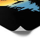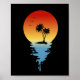 En visuellt slående digital illustration av en tropisk ö med silhuven kokokokosnötret träd mot en glödande solnedgång. Konstruktionen har en övertoning av varma riker som går över till coolans blues, skapar en mesmarsreflektion som verkar droppa nedåt, blanda surrealism med minimal estetik. Fåglarna i himmel ökar den stilla men konstnärliga vibben, skapar denna perfekt i biet för modern dekoration, kläder eller digitala utskrifter. Närvaron av havet kring ön ökar djupet och en stark tropisk känsla.
