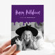 Skicka scoky Halloween hälsning med det här eerie-fotokortet som innehåller "Happy halloween" i ljusa lila-handskriftsformat. Den översta visningen på designen spräckte lila "blod" som droppar över fotot på personligen för att få en äcklig, skräckinspirerad beröring. Lägg till ditt namn på framsidan för att avsluta en anpassningsbar. På baksidan av kortet visas en passande speglad lila-bakgrund, som binder samman utseendet för säsong-post från roligten.
