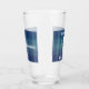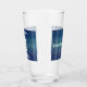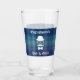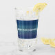 Anpassa det här blåa glaset med egen text. Glaset har en blå bakgrund både på framsidan och baksidan av dricksglasets utformning Bild: White Derby Hat with Glasses, mustache and bowtie (Vit Derby Hat med glasögon, mustasch och tarmar).