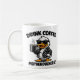 Playful wordplay coffee mug with a fun illustration.