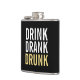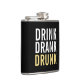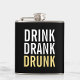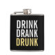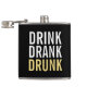 Drink Drank Drunk | Svart och Guld Chic Funny Flask med frasen "Drink Drank Drunk" i fet stil, teckensnitt stil. Observera att den guld-folie som visas på produkten är tryckt och inte en guld-folie.