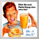 Retro och bild som främjar daglig konsumtion av orange juice. En pojke håller en pitcher och ett glas orange juice. Jag skulle bara vilja tillägga att saken måste se till att det är GMO-fritt