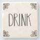 En sten underlägg med "drink" och rullar på den.