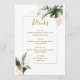 Den här dryckesmenyn i bröllop pub har grönt tropiskt löv, monster, handflatan träd löv, banan löv och faux guld löv med faux guld-rektangeln ram. Det är perfekt för ett tropiskt, strand- eller destinationsbröllop.