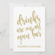 bröllopbröllopsskyltarbröllopsscanningskyltguldprisvärdglitterskriptdrinkarna är på ossöppen bar