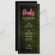 Pink neon inspired "Drinks" text at top with white custom text and boxwood greenery background.