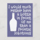 "Jag vill hellre ha en flaska framför mig än en frontallobotomi". Med hjälp av funktionen "anpassa" kan du ändra (redigera) bakgrunden färg i det här objektet och lägga till en egen text om du vill. Se min butik för fler artiklar med den här designen.