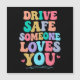 Warm reminder message with colorful hand lettering on a dark background. A gentle and emotional phrase that encourages safe driving and shows care, love, and connection for family, friends, and loved ones.