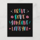 Warm reminder message with colorful hand lettering on a dark background. A gentle and emotional phrase that encourages safe driving and shows care, love, and connection for family, friends, and loved ones.