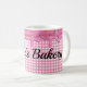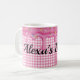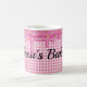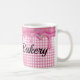 Att köra rosa tårta i isning med kandissprinkler på rosa och vit gingham-bakgrund. Text kan redigeras eller tas bort.