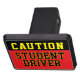 Öga som fångar svart och gult varnar för att släp slår till. Text läser Varning Student-drivrutin. Använda den här utformningen skapar en säkrare miljö för dem som lär sig att köra bil. Föräldrarna kopplar detta till din bil när din student-förare tränar bakom ratten. Perfekt för att låta alla omkring dig veta att en student-förare kör bil eller lastbil. Hjälper till att informera andra ge om ditt bilutrymme på vägen. Perfekt för nya förare med inlärningstillstånd. Du kan också ändra texten så att den passar ditt eget meddelande.
