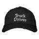 Den svarta hatten har ord, Lastbil-drivrutinen inbroderad i vitt.