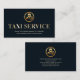 Ett mörk blått hölje har en glansig metallisk guld-signal "TAXI SERVICE" nära kortets centrum.