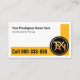 Ett vitt omslag har en höger med vinkel gult med lager. Att rida på lagrar är en logotyp i guld taxi som man kan använda vid sidan av den mobila kontakten. Ovanför detta är namn "TAXI SERVICE" och ditt prestigefyllda namn. På andra sidan används samma designtema med logotypen "TAXI" placerad i hörnet med kontaktuppgifter. Ovanför detta är ert prestigefyllda namn och en slogan som ni kan ändra på. Ett underbart kort för snyggt för taxi-chaufförer, chaufförer för använda. #taxi #taxiservice #taxiride #taxidriver #driver #privatiedriver #chauffeur #limo #designateddriver #rideshare #zazzlemade