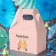 Svart Glad påsk-text med busschaufför med gigantiska morötter på rosans bakgrundsdesign.