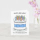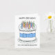 En enkel illustration av en vit, iögonenfallande födelsedagskalas med en blå bog runt den, åtföljd av ord "Grattis på födelsedagen till en mycket speciell förare i buss".
