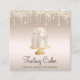 affärskort för chic för konfektionskonstruktörer och specialister på bröllop, bagerier, konditorer och evenemangsrestauranger. Framsidan har champagne guld faux glitter som tappar ner en guld-bakgrund, ett exempel på en vacker ornate bröllop-kaka med samordning av glitter-isbildning, och ditt företag namn i ett mjukt grått-skript i snyggt. Lägg till namn, titel och kontaktinformation i motsatt riktning.