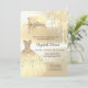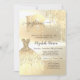 Elegant guld klänning och guld glitter droppar mot guld.