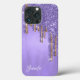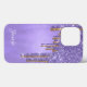 Elegantens telefonfodral i en lila folie ser ut med faux lila och guld glitter-färg som droppar nedåt, från överkanten av fodral. Anpassa texten för dig själv eller som en chic presentidé för henne.