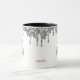 I mugg finns det två ansikte mellan lycklig och snögubbe. Toppen gränsar till glatt silver glitter-dropp. Ditt namn eller annan text finns mellan snögubbe ansikte. Tur till jul och hela vintern.