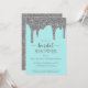 Luxury Aqua Teal Blue Silver Gnistra Glitter Drips Inbjudningskort för möhippan med faux glitter drops och grå teal bakgrund. Perfekt för lyxhändelsen. Kontakta oss på cedarandstring@gmail.com om du behöver hjälp med designen eller matchande produkter.
