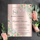 En modern, chic och glamorös inbjudan med glitter-droppar och rosor på ro guld.
