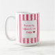 Fira din kärlek till kaffe och mode med den här bedårande rosa randiga muggen! Med den stilrena och igenkännbara texten "Driven av koffein och snygga outfits" är muggen designad för tjejen som balanserar sitt hektiska liv med stil och en perfekt bryggd kopp.