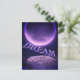 Blålila fantasimåne och ordet Dröm inspirerande vykort. Klicka på Anpassa för att lägga till text på framsidan eller baksidan. Besök Smilin' Eyes Treasures för att se mer blommor och naturfotografering och digitala konstkort och presenter för hemmet och kontoret.