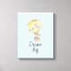 Liten elefant i varmluftsballong med "dröm stort"-text på ljusblå bakgrund gör den perfekta väggen för barnkammaren.