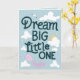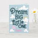 Mjuka moln, en uppgående sol och lekfulla himmelska element omger budskapet Dröm stort lilla en. Detta varsamma gratulationskort för bebisar firar början på ett nytt liv och önskar varmt för framtiden. Personifiera insidan med ditt eget meddelande eller låt det vara tomt.
