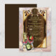 En drömfångardesign med guldbeslag och bruna kanter som inkluderar en rund bamboring livets nät med bruna fjädrar och röda pärlor på en mjuk fjäderbakgrund.