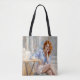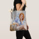 Drömlig rödhårig kvinna i mjuk färg tygkasse