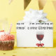 Den roliga designen är perfekt för vinentusiasten! Designen presenterar ett vinexponeringsglas med rött vin i den. Det finns röd jul bugar bundet till stemen av vinexponeringsglaset med en nedanför sprig av järneken den. Det finns text i den svart stilsorten något att säga "mig att drömma för förmiddag av jul för ett vin!",