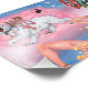 En färgstark vattenfärgad abstrakt som illustrerar en sovande gudinna framför en färglös bakgrund, som drömmer om en fyllhorn, en vit hög, en gren med bär och en ung gud, som leker på ett lyre medan man rider på baksidan av en muskulärt vit, strålande lögn.
