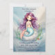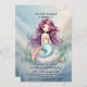 Gör ditt barns födelsedagsfirande till en oförytterlig saga med denna förtrollande sjöjungfru-inbjudan! Tänk dig detta: en mystisk undervattensvärld som kommer till liv, där en livfull sjöjungfru med flödande lila hår sitter graciöst på en klippa, omgiven av ömtåliga havsväxter och en glad liten fisk. De pastellfärgade nyanserna och den drömlika designen sätter tonen för en magisk dag som dina gäster inte vill missa.