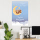 Drömmande teddybjörn Mån Mjuk Blå Baby Shower Poster