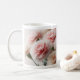 Kaffemuggen Drömmar om rosaknejlikor har mjuka rosa och vita nejlikor i en delikat, romantisk design. Perfekt för att lägga till elegant blomstercharm i din heminredning, sovrum eller vardagsrum.