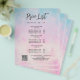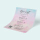 Lekfull och drömsk flygblad i pastella färger av lila rosa gult och turkos med ett kalligrafiskt teckensnitt.