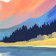 Detta akvarellkonstverk, handmålat av Fantabuloustef, är ett vackert och lugnt landskap som inger en känsla av frid och stillhet.