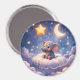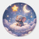 En touch av himmelskt fantastisk rund magnet med en söt baby elefant inklämd på en fluffig moln under en lysande halvmåne och gyllene stjärnor. Denna högkvalitativa magnet är perfekt för att dekorera ditt kylskåp diskmaskin eller någon magnetisk yta. De livfulla vattenfärgstrukturerna och den djupa indigofärgade himlen är skyddade av en slitstark repa-resistent finish.