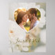 Fira en vacker union med denna romantiska bröllopsaffisch med ett mjukt, blekt foto av en vit ros av Destei. En hjärtformad fotomall låter dig visa parets favoritbild med personliga namn och bröllopsdatum nedan. Denna eleganta design gör en vacker välkomstskylt, fotodekoration eller minnessak för det nygifta parets hem. En tidlös och graciös touch för bröllopsfirande och mer.