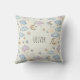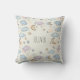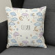 Denna personliga kastkudde har en skissartad illustration av lekfulla stjärnor, halvmånar och ludna moln i mjuk pastellvattenfärg.
