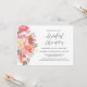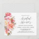 En vacker feminin akvarellblomsterinbjudan till bröllopsfest med en bukett av blandade blommor i persika, rosa, lax, korall, blek lavendel och elfenbensvit med släpande grönska. Anpassa textmallen med dina detaljer för bröllopsfesten.