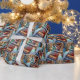 Snö täcker marken lätt när en drönare svävar över en välkomstmatta och levererar en julpresent prydd med ett rött band
