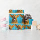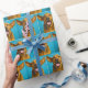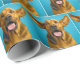 A drooling bloodhound dog with large, floppy ears and a humorous expression is depicted against a bright blue background