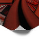 Abstraktens ryggstödsdesign liknar en snurrande svart, röd och vit kortfack med ett par hjärtan i mitten.