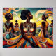 Detta är Drottningar Bland Oss. En hyllning till närvaro, kraft, elegans och arv. Dessa kvinnor väntar inte på kronor. De är kronan. Insvepta i flödande smyckesfärgade klänningar med guldbelysningar, formade siluetter och himmelsk energi bakom dem, utstrålar detta konstverk gudomlig femininitet och kulturell stolthet.