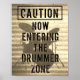 Den här coolan poster grungtrumman med en trumkitsilhuett och texten: CAUTION - Nu matar du in Drummer-Zona. Vilket underbart tillägg till din studio eller mancave, eller perfekten till musiker eller musik älskare i ditt liv! Besök min affär på zazzle.com/drumjunkiegraphics för mer musik, merch och musikpresentidéer! Copyright Linda Smith - alla höger förbehållna